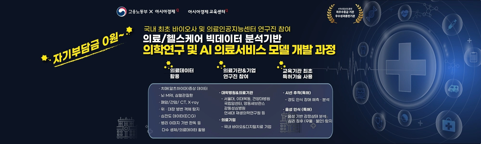 브랜드: 아시아경제 교육센터, 과정명: 의료/헬스케어 빅데이터 분석 기반 의학연구 및 AI 의료서비스 모델 개발과정 6기모집개요