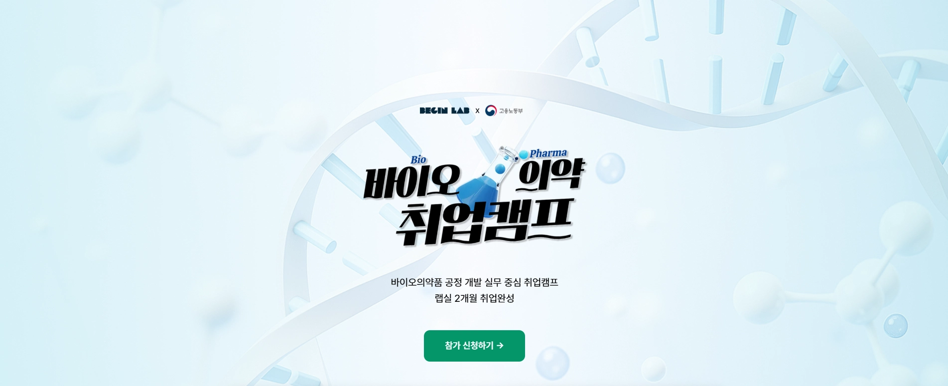 - 필수생명 및 화학 기초지식을 보유한 구직자 또는 실업자 (대학교 3학년 이상 재학생/휴학생/졸업예정자/졸업자 가능)