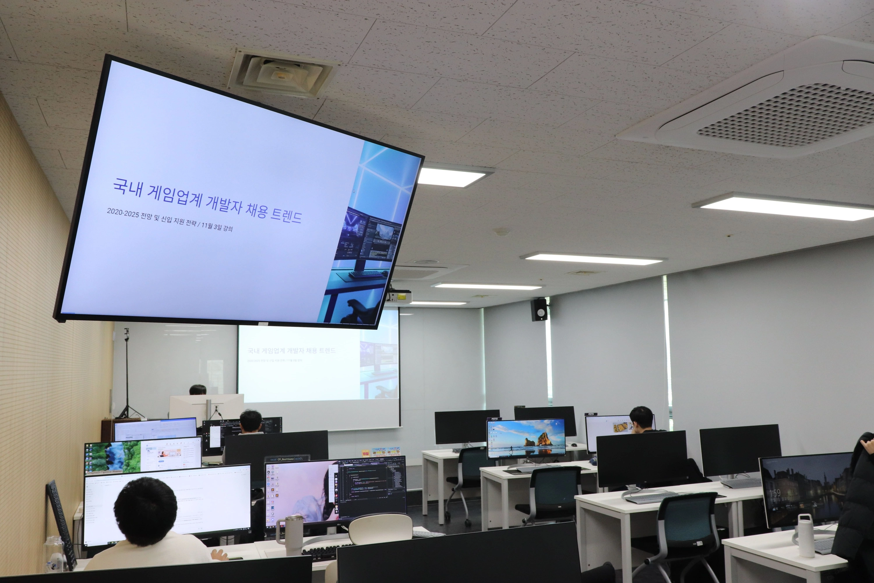 글로벌 실무 경력 보유 강사진 Halo Infinite, Bytedance 등 실제 글로벌 기업 출신의 젊은 강사 단순 강의 경력이 아닌, 실무 기반 문제 해결 중심 지도 글로벌 개발 프로세스 이해 공유 👉 산업 트렌드를 반영한 교육 운영