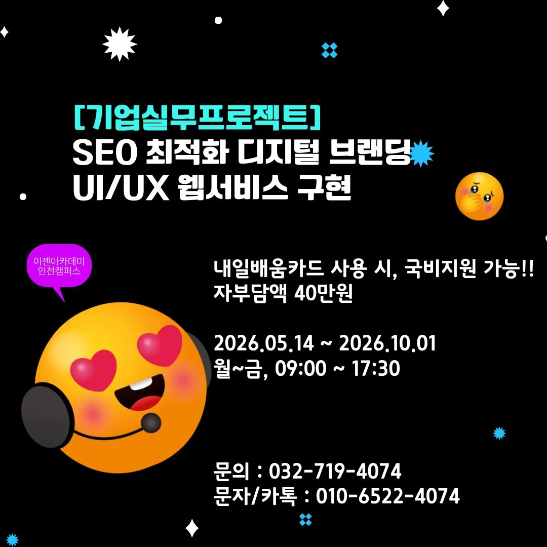 구직자에게 개인의 비용부담 없이 직업훈련을 받을 수 있는 기회를 제공하고 기업에서 필요로 하는 전문기술인력으로 양성하여 구직자의 취업과 기업의 인력채용을 지원하는 사업입니다. * 2026년 1월 과정부터 자기부담금이 발생될 수 있습니다. (최대 60만원)