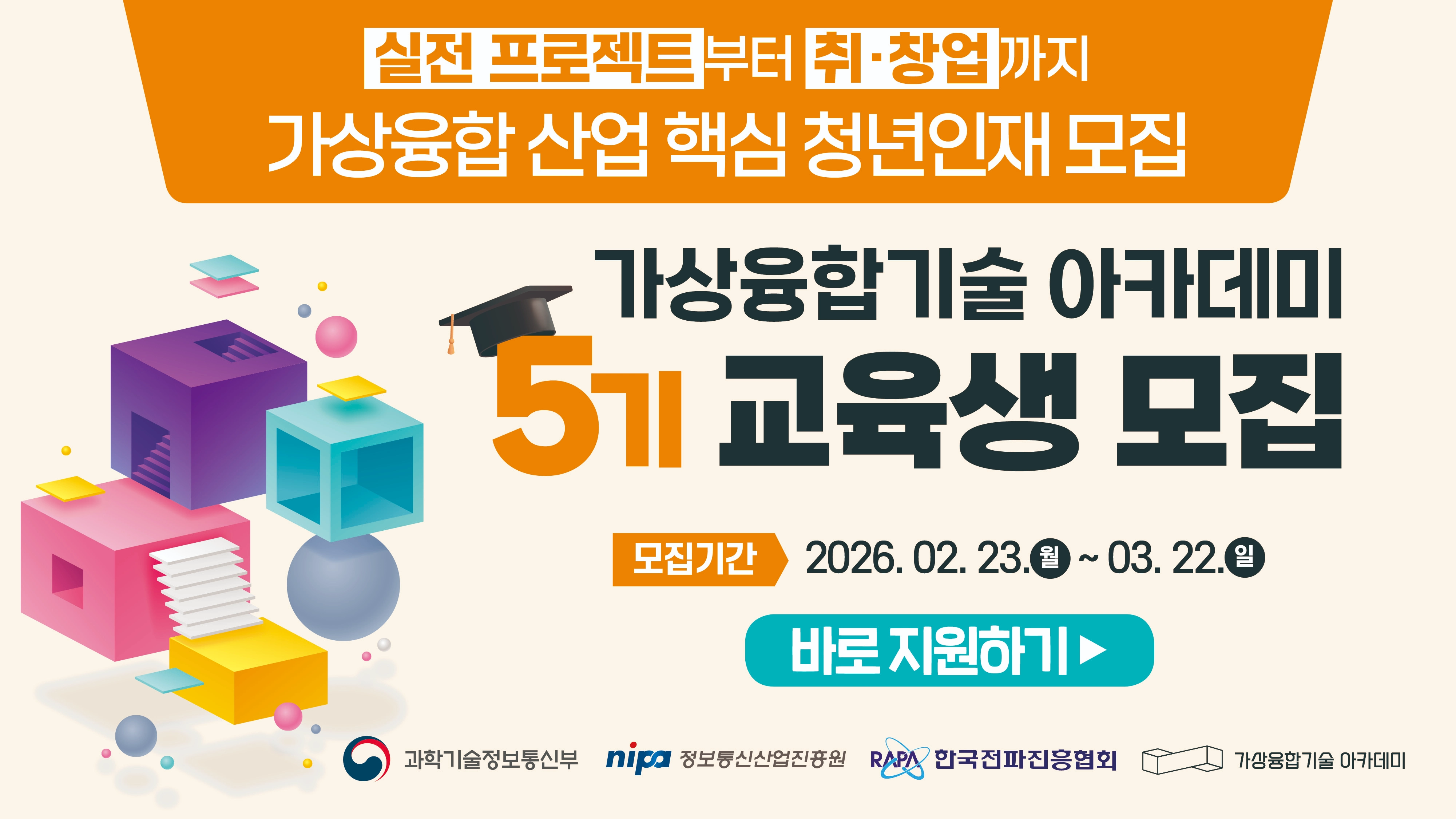 브랜드: 한국전파진흥협회, 과정명: 가상융합기술 아카데미 5기모집개요