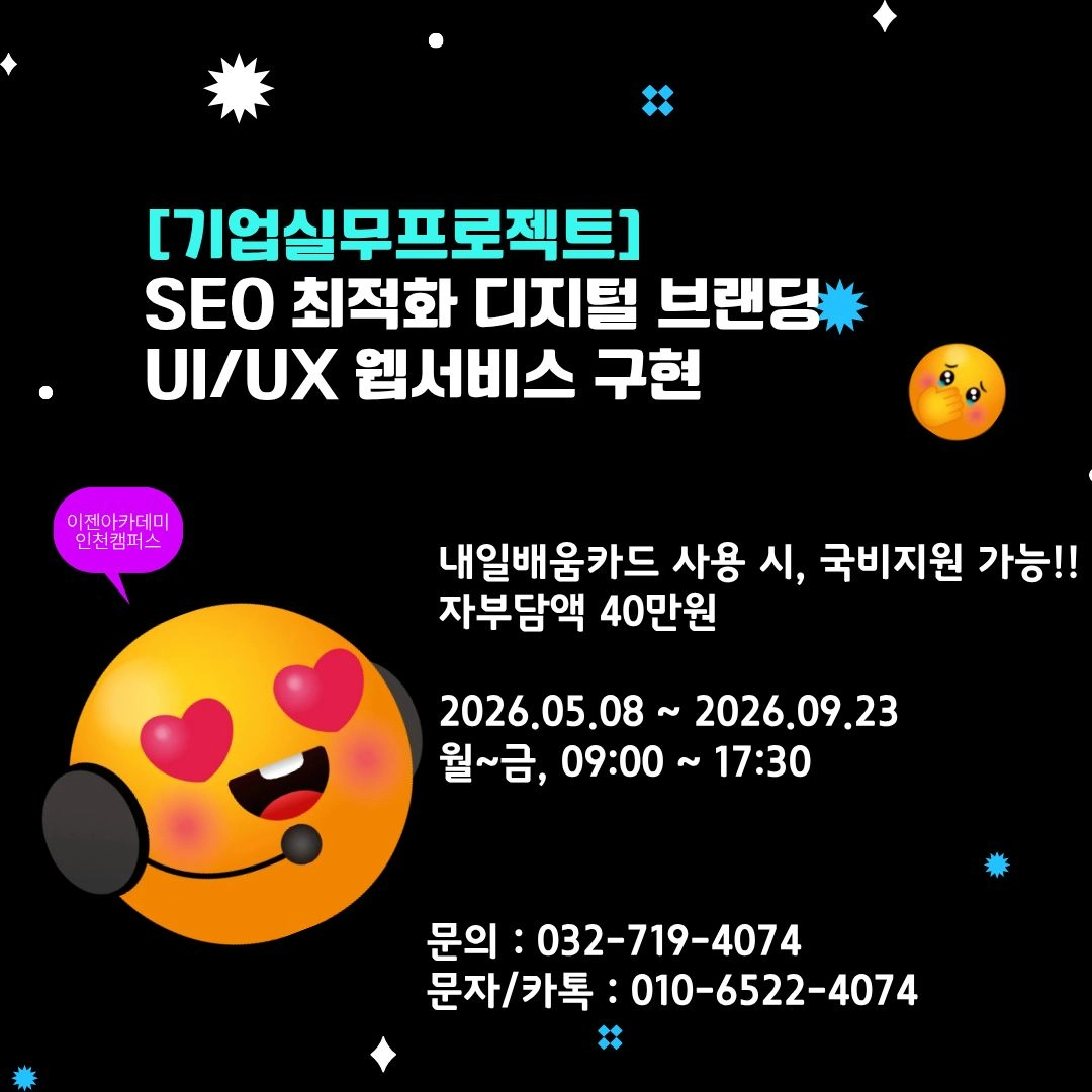 이젠아카데미 [기업실무프로젝트]SEO 최적화 디지털 브랜딩 UI/UX 웹서비스 구현 2기 | 40만원