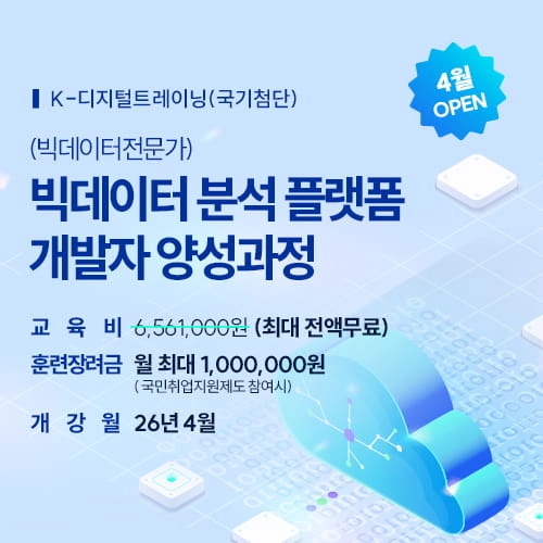 코리아IT아카데미 대구 (빅데이터전문가) 빅데이터 분석 플랫폼 개발자 양성과정 | 40만원